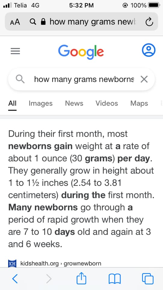 - Between Thursday and Friday Eloise gained 100g. Between Friday and today she gained 44g and has now officially surpassed her birth weight. I had no idea if these numbers were good or not but Dr. Google seems to think so.