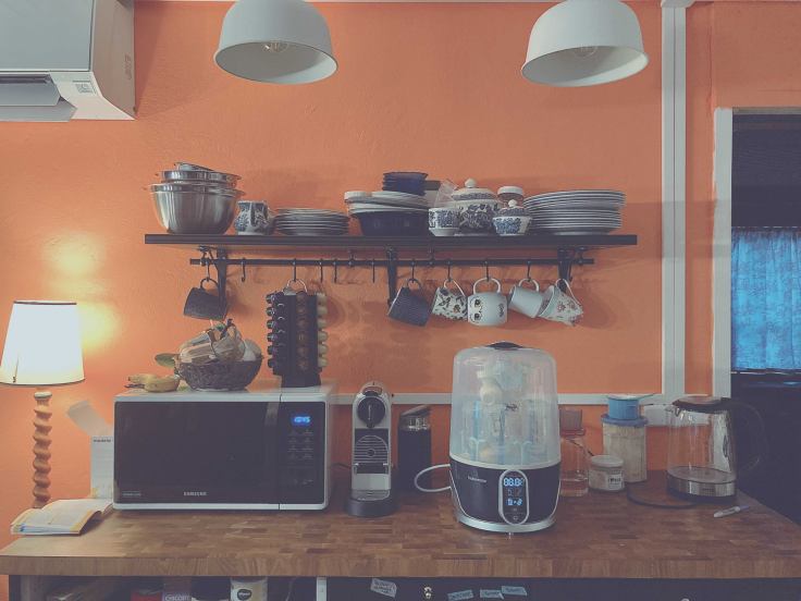 Because fresh milk is better for her than warmed up milk (fats, antibodies, etc.) I prioritize feeding her freshly pumped stuff. So to make sure we’re as sure as we can bet that bacteria has the least opportunity to grow, we normally sanitize all equipment before every pump.