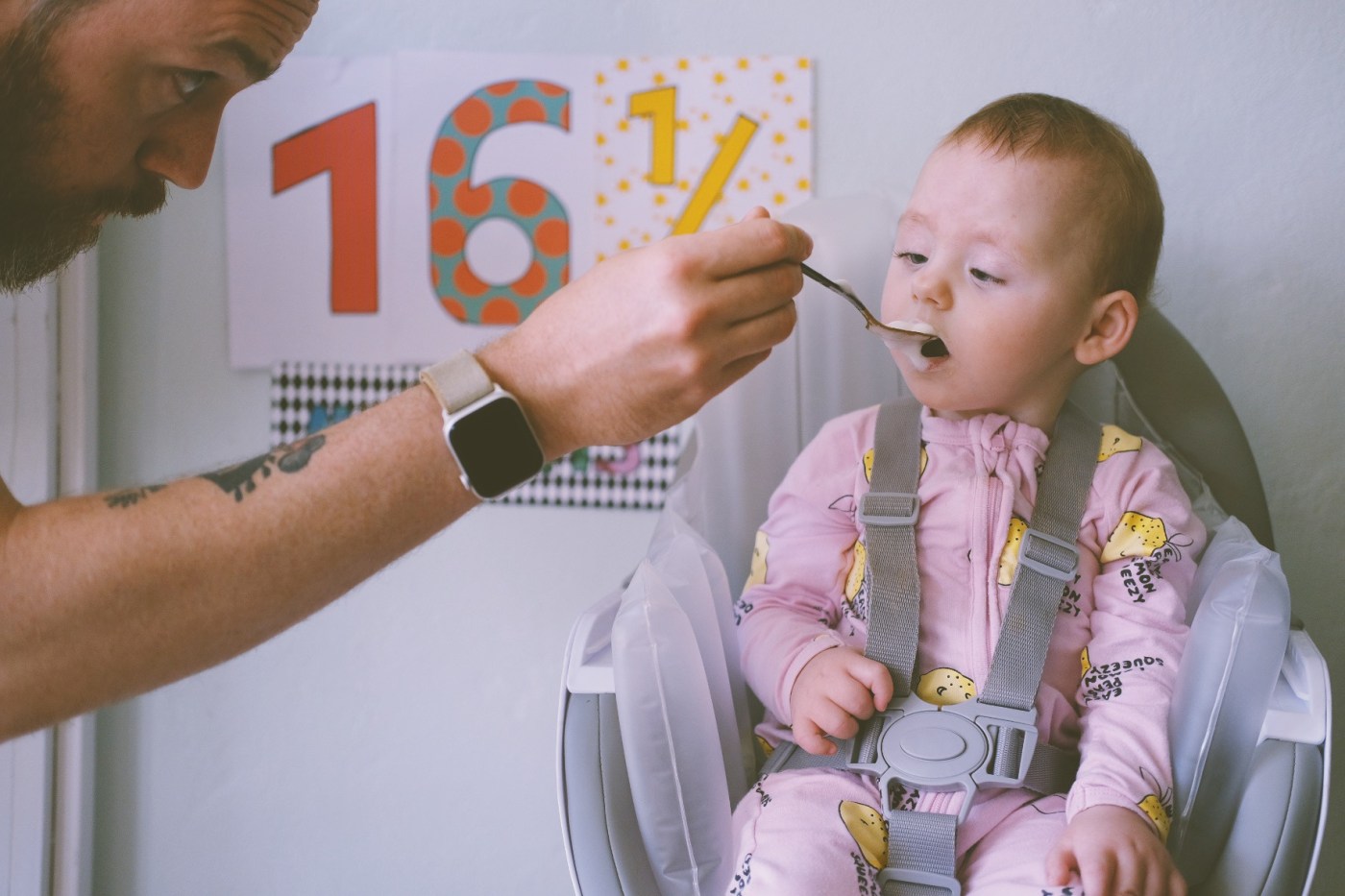 Thursday was a sacred day. As I made scrambled eggs for breakfast, Eloise happily rolled around on the floor — entertaining herself with whatever objects she found nearby. She seemed so happy that even once the eggs were done, I decided to take a few minutes to empty and re-load the dishwasher. Then I sat E in her normal-kid high chair and we ate the eggs together — and that was after already having a 180ml bottle 45 minutes before.