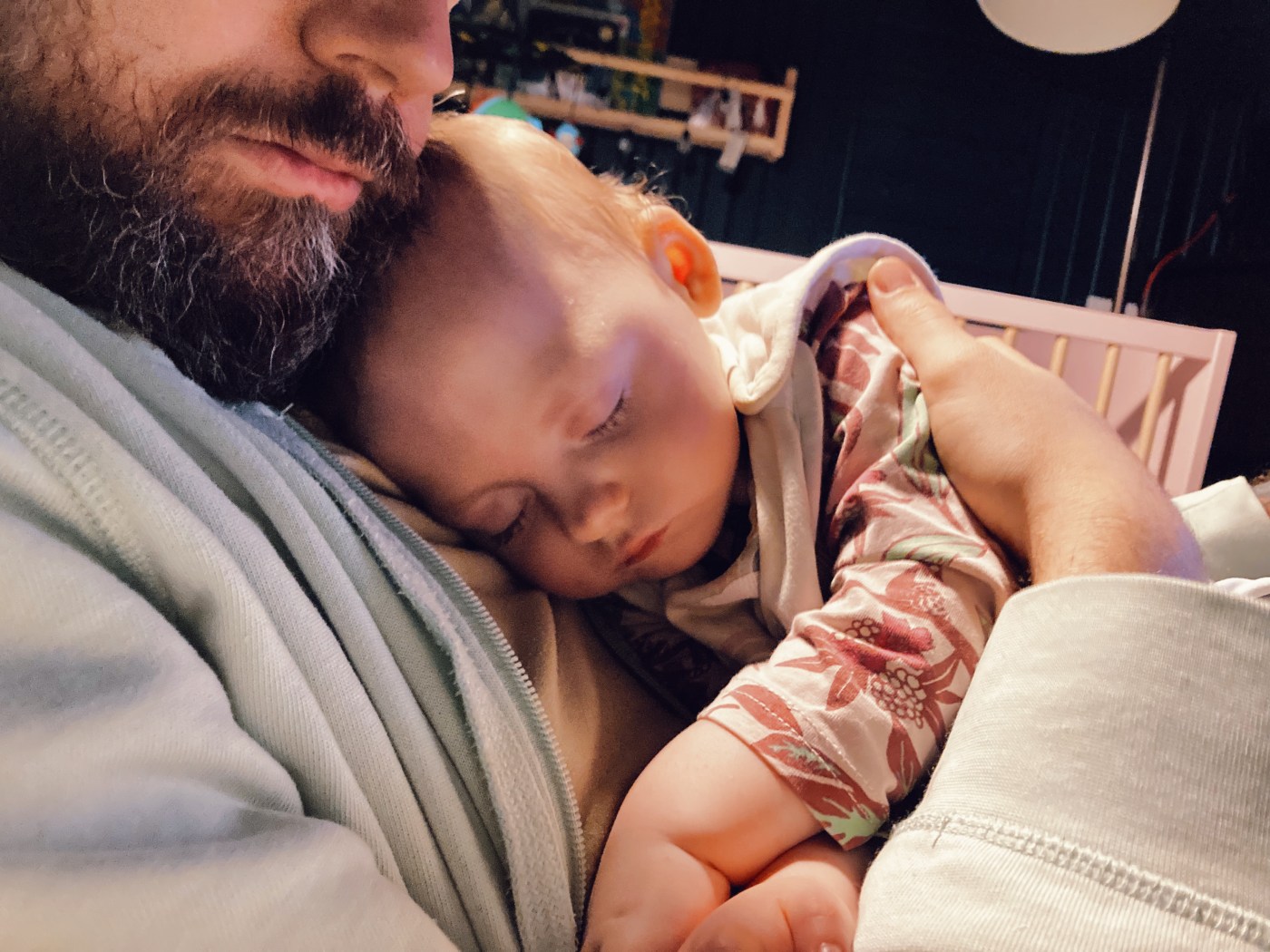 Regardless, though, we miss our snuggly cute kid. We’ve seen glimpses but, by and large, she’s mostly been asleep since yesterday morning.