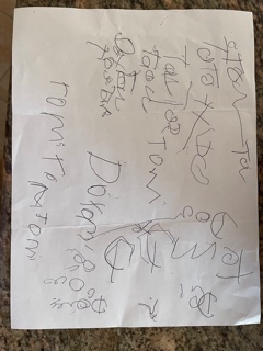 Tami learned to write her first name. And so, all her life, in the deliberate writing of a child, Tami would write her first name over and over and over again on pieces of paper. Her last name was a little harder, so she could only ever get the first 2 letters, but still. She was proud. In later years she discovered it was much easier to type her name on a computer than write it out, so Ron would help her use different color fonts to type out T-A-M-I over and over again.