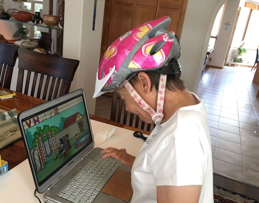 Tami enjoyed a lot of activities until her neck was injured and she had trouble raising her arms. She participated in Special Olympics, did cross-country skiing in our back yard, shooting basketball hoops, ping-pong, riding her big wheel tricycle (crossing the street going to the park without Mom’s knowledge), riding on a bicycle for two with Dad, helping Mom with laundry, yard work, putting a golf ball in the yard or riding a golf cart with Dad, riding the Tram, swinging for hours in her hammock chair, doing games on her iPad, and playing her version of Dominos and Uno. Tami enjoyed her daily walks while at home. Her goal was a long walk to the stop sign and turn around. Tami was comforted with a deck of cards in her hands and would want a deck to put under her pillow at night. Some nights we would hear her awake shuffling the cards in her hands. There are still decks of her cards in each car. It was also important for her to have a small Readers Digest to flip through the pages.