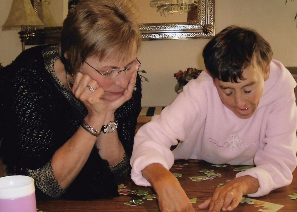 And puzzles. Boy did Tami love puzzles. At first, her family gave her the wooden puzzles meant for toddlers. Back then, there weren’t little wooden knobs on the pieces, so Jan and Ron put a big, thick pushpin on top of each piece of these 4-5 piece puzzles. That way Tami could pick up each piece with the pushpin. From there, Tami gradually started doing harder and harder puzzles, until Tami got to the point that she could do 60 and sometimes 100-piece puzzles. By the time she was an adult, Tami could put together puzzles at lightning speed that amazed everyone around her. No “normal” adult could figure out as fast as Tami where those pieces went.
